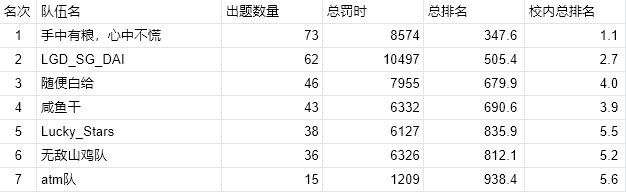附表1 暑期集训各队排名