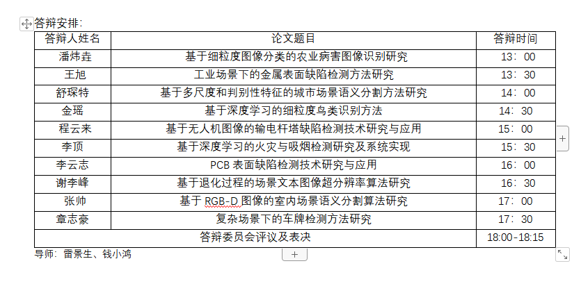 答辩地点及方式: 浙江科技学院实验大楼533会议室,线下答辩