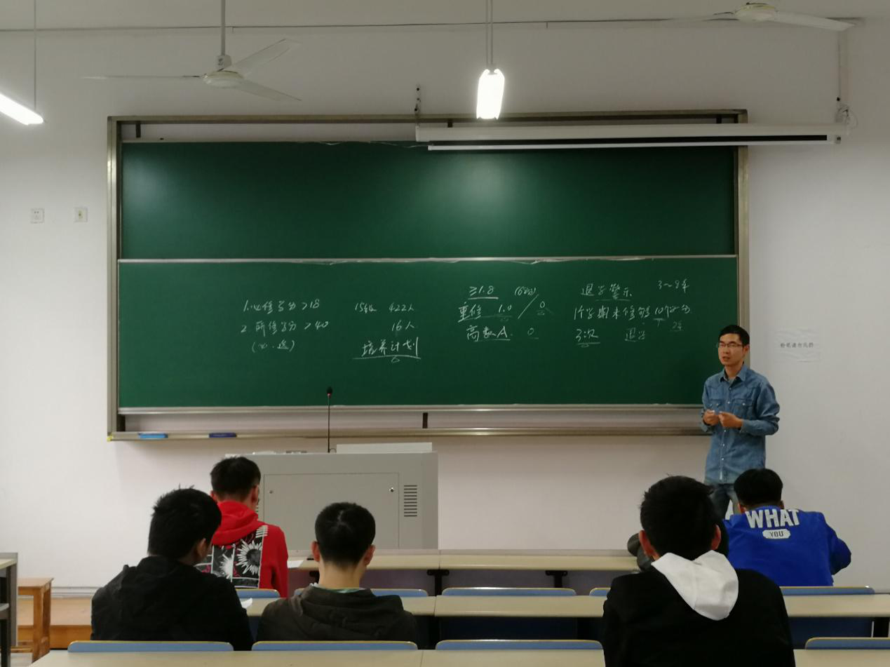 紧接着,潘中祥老师和吕兵兵老师分别对2015级之前与2015级的降级生分开进行教育。耐心回答同学们所提出的问题,并要求同学们能认真对待每一门课程,根据培养计划完成自己的学习任务,告诫同学们学习的重要性。