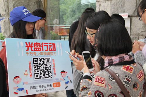 本次活动线上线下同时进行。当天10:00-13:00,信息学院组织工作人员在东西和、听松三大食堂门口设立活动专区,张贴活动海报,引导学生现场扫描“活动二维码”参与微博接力。扫二维码或者参与挑战“光盘公益”就有精美小礼物相送。此活动旨在提高大众节约粮食的意识,引导学生自觉实践节约粮食的号召!从你做起,从我做起,一起光盘,向浪费说NO!
