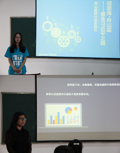 启动仪式伊始,信息学院的信息海·舟山蓝舟山暑期社会实践队等四支队伍分别就各自的活动计划为我们带来了精彩介绍,其中囊括科技,文化,教育等多个方面。接下来,姜国泉老师对学生们的前期准备进行了简要评价,为学生讲述了许多注意点,提出了宝贵的建议。同时,姜老师和学生们分享了有关暑期社会实践的经历,现身说法,让同学们受益良多,姜老师还希望同学们能在实践中锻炼自己,以更好的面貌报效祖国。周晓夏老师以及吴京金老师则在仪式中反复地嘱咐同学们在外实践时要时刻注意衣食住行的安全问题。
