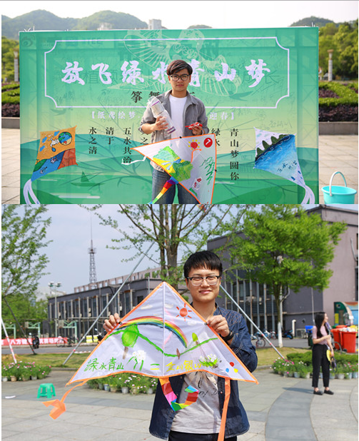 活动一共分为“纸鸢绘梦、放飞梦想、游园迎春”三个环节。最显同学们强烈治水信念的,是在“纸鸢绘梦”环节中,参赛选手们充分发挥创造力,将“美丽家园”与“五水共治”相结合进行创作,在风筝上渲染出了一幅幅承载着科院学子们心中“绿水青山梦”的美丽画卷。这些五彩缤纷的风筝,不仅传递着“绿水青山就是金山银山”的绿色理念,还寄托了同学们对“五水共治,共建美丽家园”的心愿、梦想和祝福。蔚蓝天空中,承载着对治水美好祈盼的手绘风筝,乘着春风愈飞愈高,铸就了一道靓丽的科院风景线。