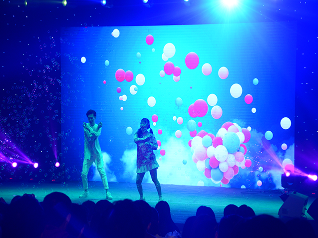 在四位主持人一番深情的开场后,一阵动感的音乐袭来,五位青春洋溢的舞者映入眼帘,他们带来的开场舞《甜心轰炸机》瞬间点燃全场赢来一阵欢呼。上一秒还沉浸在躁动的氛围中无法自拔,下一秒就被杨泽宇深情而宁静的《ohio》打动。