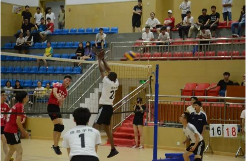 眼看经管学院率先拿下赛点,信息学院不折不挠、稳扎稳打,最后以精彩的拦网、漂亮的扣杀连续得三分,实现比分的逆转!