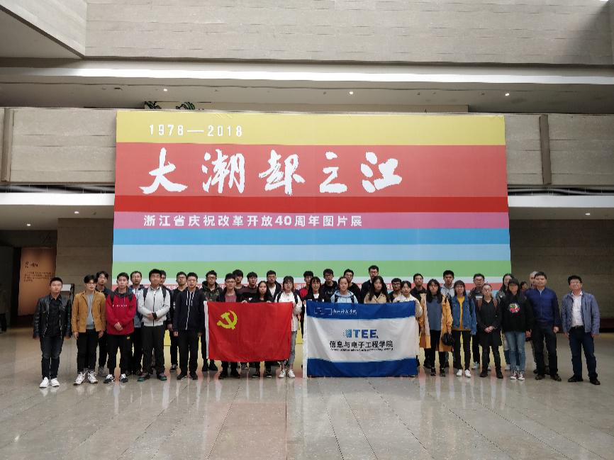 适逢改革开放四十周年,为深化党员党性教育,增强爱党爱国情怀,11月8日,信息学院党委组织学生党员、预备党员、党员发展对象等前往浙江美术馆开展党建活动,活动由党委副书记姜国泉、党建组织员潘中祥带队。