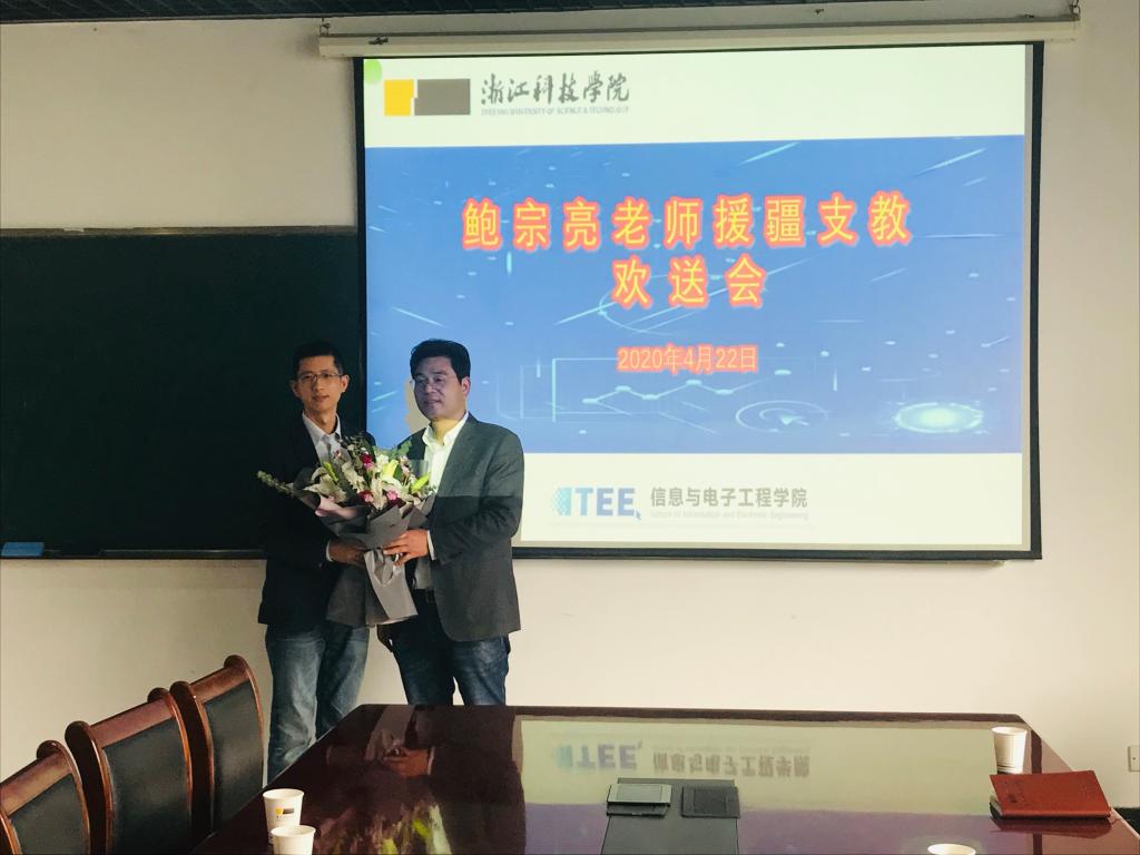援疆教师鲍宗亮老师作表态发言。他表示,将不辜负学校的信任与重托,坚决服从学校和受援单位的领导和管理,努力上好每一堂课,站好每一班岗,以实际行动为学校争光,为浙江添彩,为援疆工作做出自己应有的贡献。