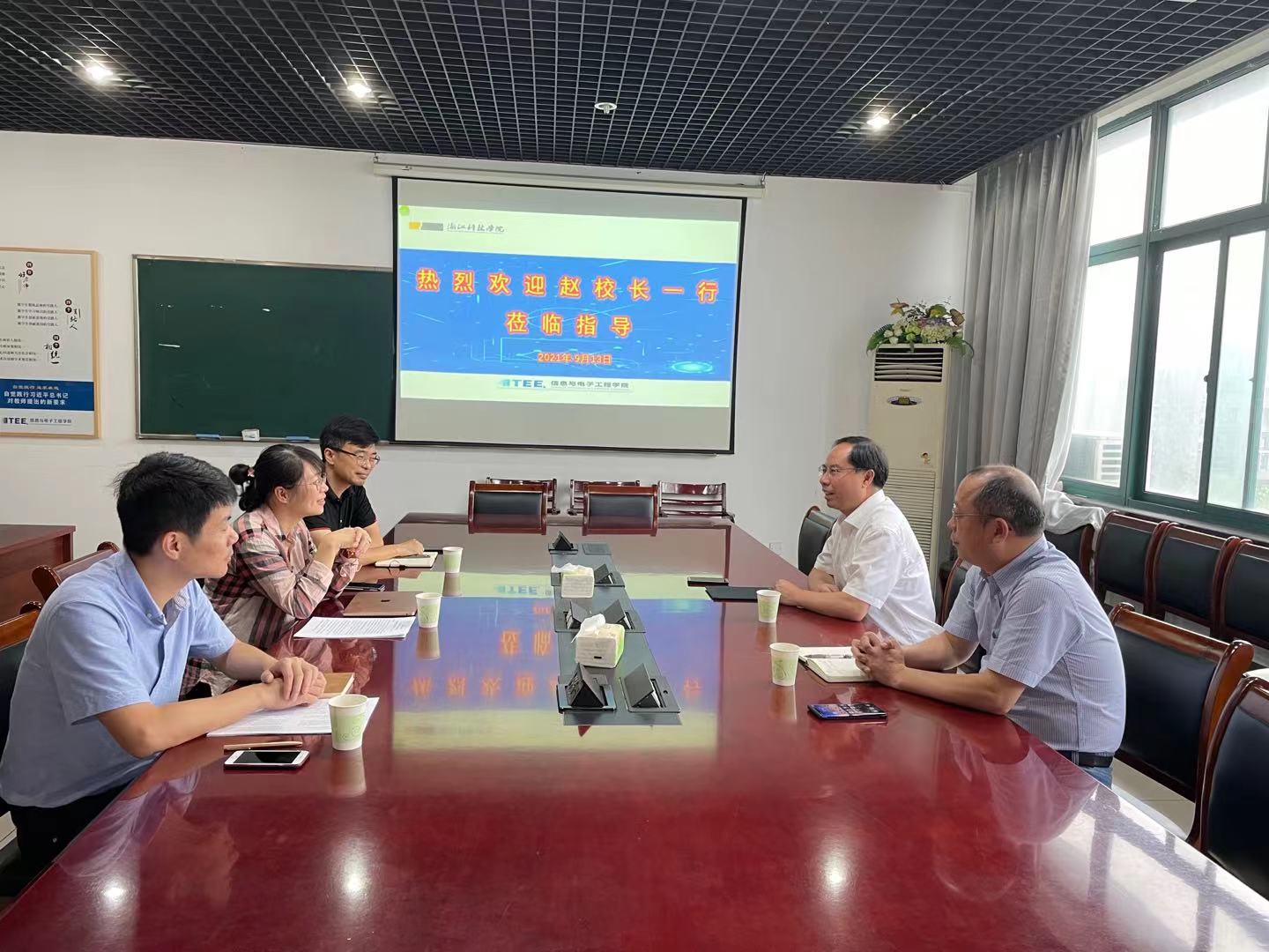 院党委书记张蕾汇报了人工智能产业学院信息技术产业研究院建设、学院和“虹软”等头部企业合作等学院重点工作。听取汇报后,赵东福对学院今年以来各项工作及取得的成绩表示肯定,并指出,下一步学院发展要找到志同道合的合作伙伴,建立共同的奋斗目标,做特、做专、做精产业研究院。