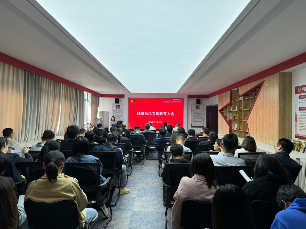 会上,张蕾领学《中共中央 国务院关于弘扬教育家精神加强新时代高素质专业化教师队伍建设的意见》、《新时代高校教师职业行为十项准则》等教师队伍建设与师德师风建设相关文件精神,并传达了学校有关师德师风建设一系列重要文件精神。张蕾说,通过师德师风学习和警示教育全院教师要树立“师德意识”,做到严格要求自己,树立正确的价值观、职业观,以实际行动推动师德师风的持续提升。